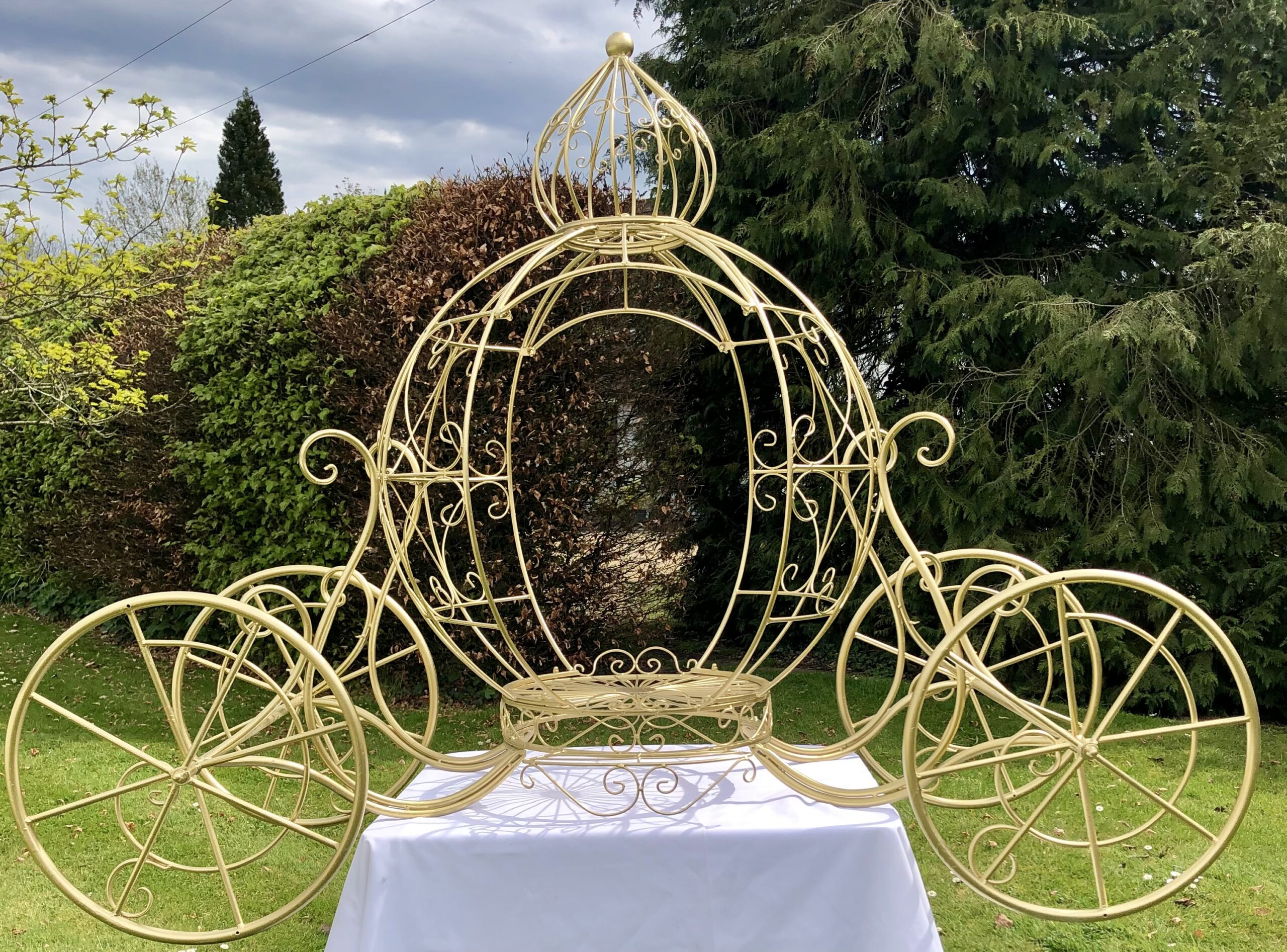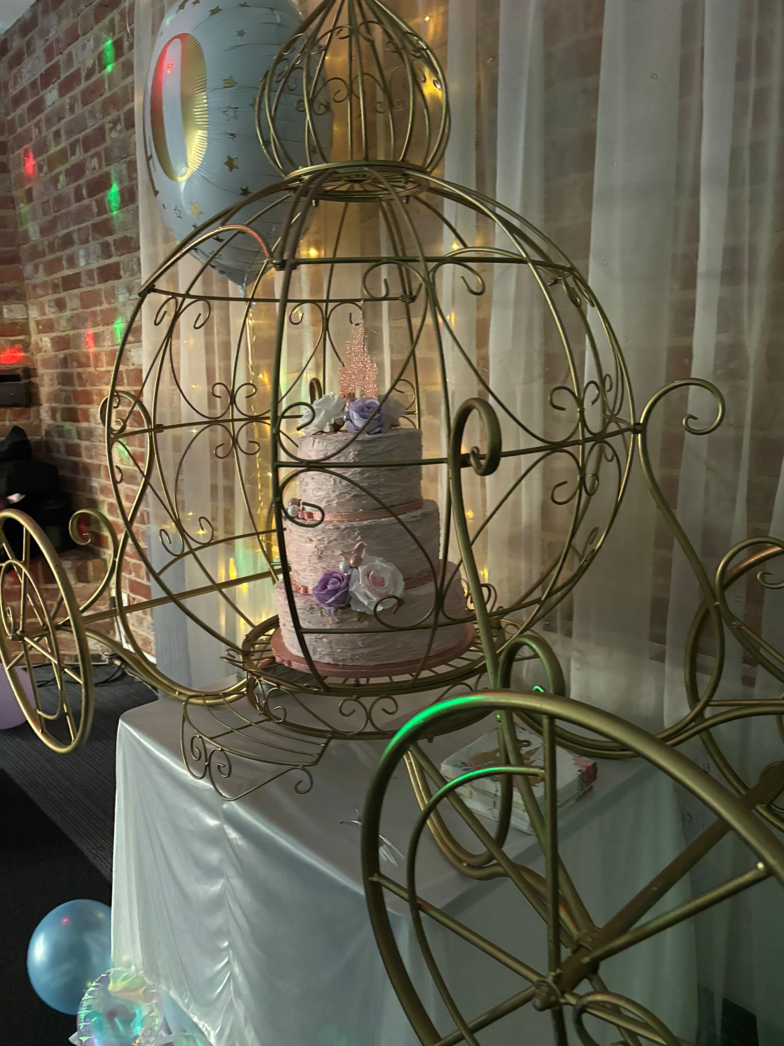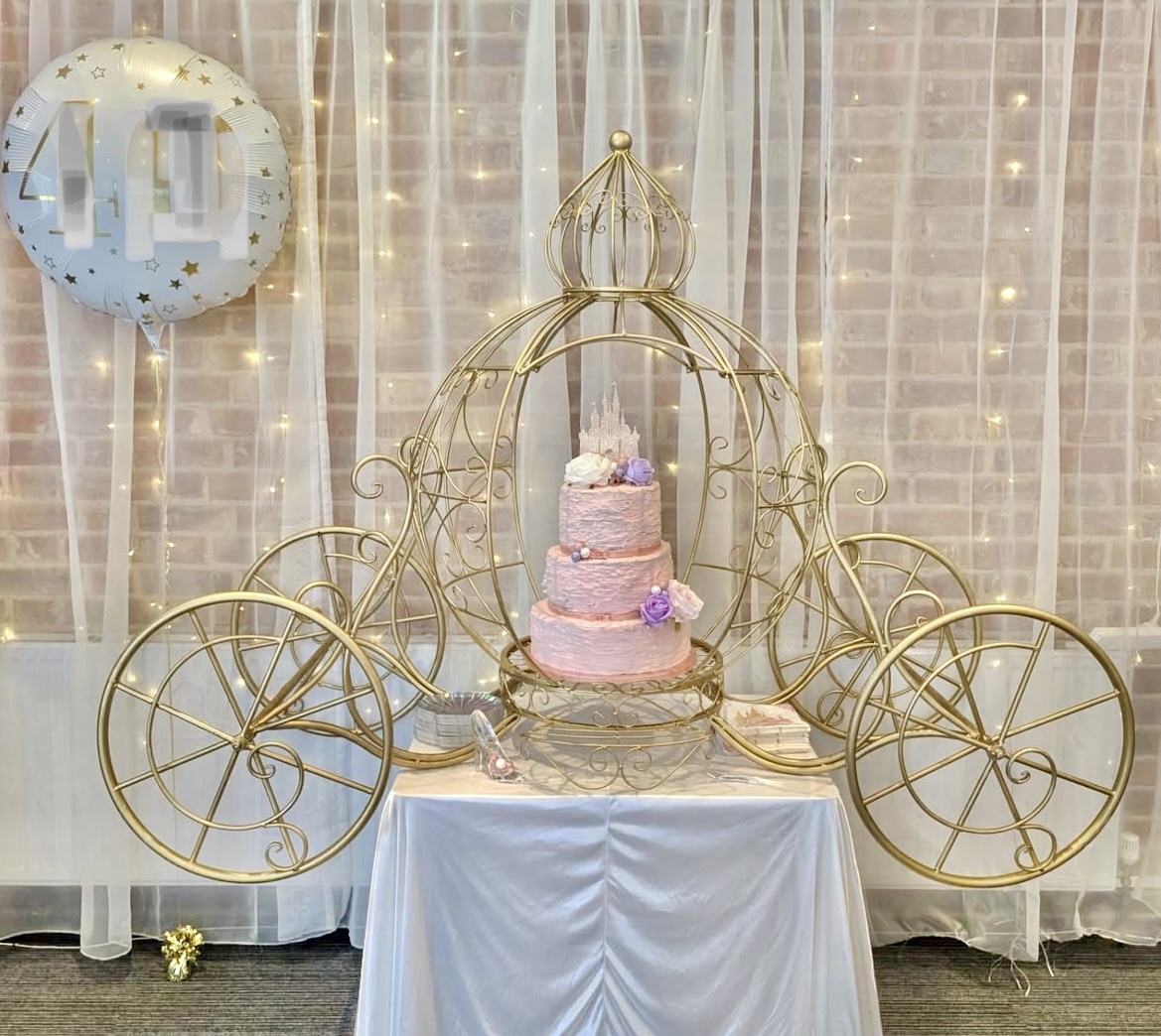 This delightful little carriage will display your beautiful cake for any occasion making it a main focus of your event. It’s an ideal addition to a Disney or princess themed event or wedding and creates a perfect magical moment for a photo opportunity. Comes with a table stand or can be simply displayed on the ground.